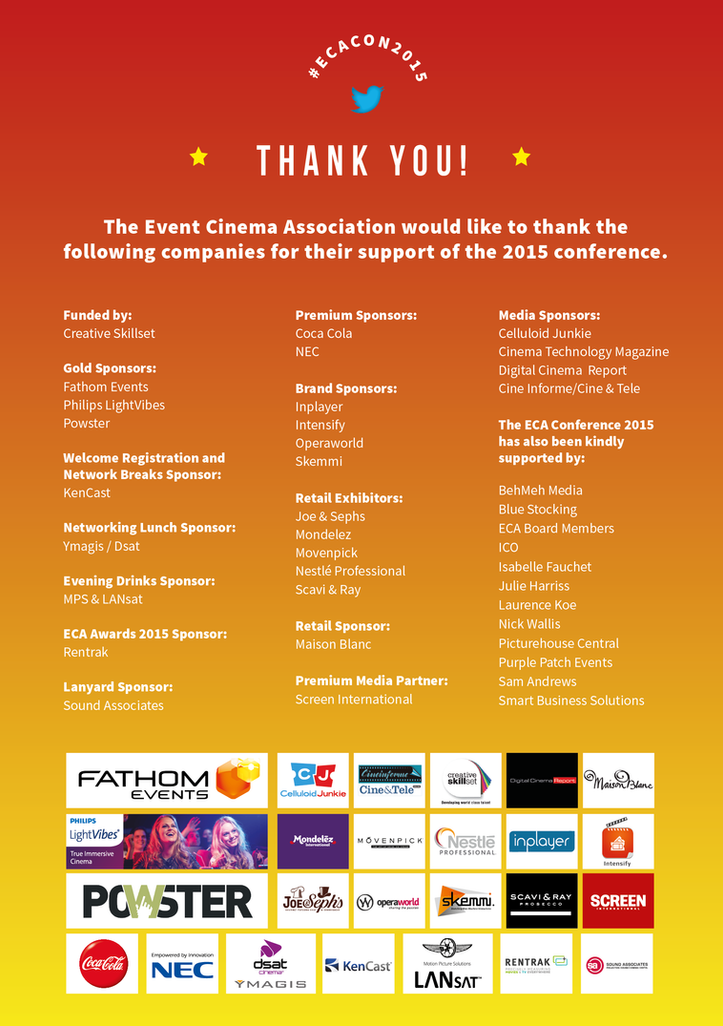 Hosting more than 250 industry players from 20 territories worldwide, ECA Con brought together experts and industry players (from exhibitors and distributors to content providers) to identify and debate innovations, trends and best-practice in the event cinema industry.